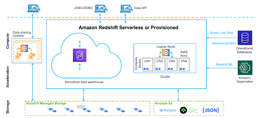 The cloud-based data warehousing service Amazon Redshift is offered by Amazon Web Services (AWS). It has been designed to handle large volumes of data and carry out fast analytics on that data. Redshift is built on a columnar storage architecture, which offers numerous advantages for data warehousing and analytics workloads.